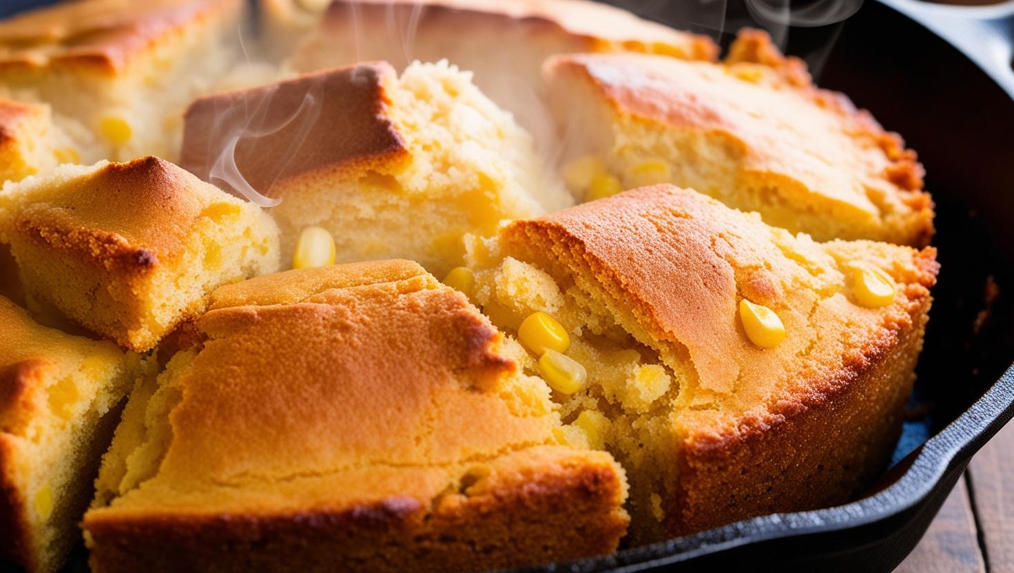 Saftiges Maisbrot, goldbraun gebacken und mit einer leichten Süße versehen. Die perfekte Kombination aus weichem Inneren und knuspriger Kruste – ideal, um deine BBQ-Mahlzeit abzurunden.
